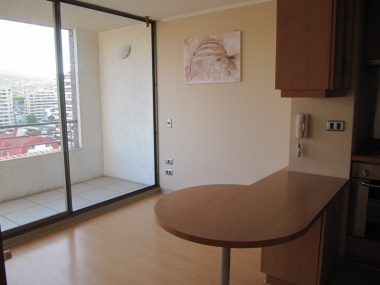 Departamento sin muebles por año corrido, en el piso 14, con vista despejada a Avenida Viana. Consta de un dormitorio con dos closets, living, cocina americana, un baño en suite, amplia terraza, bodega y estacionamiento en subterráneo.
